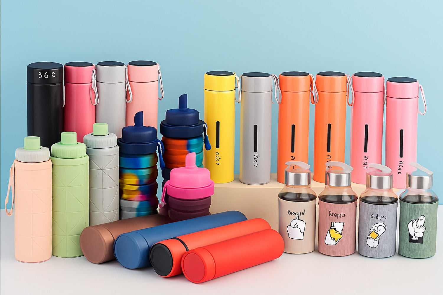 Expandable Water Bottle | Silicone Water Bottle For Gym , School, Hiking | Folding Water Bottle | 500 ML Capacity | Multicolor