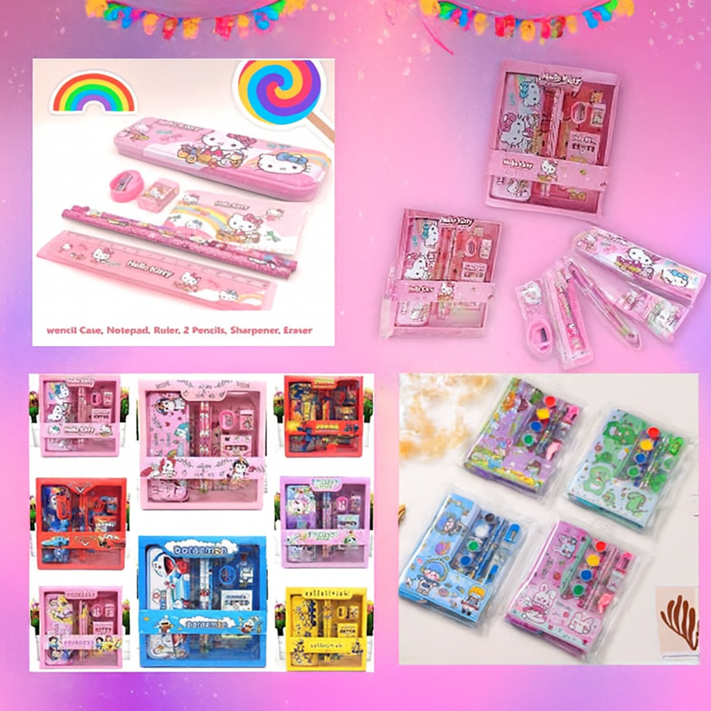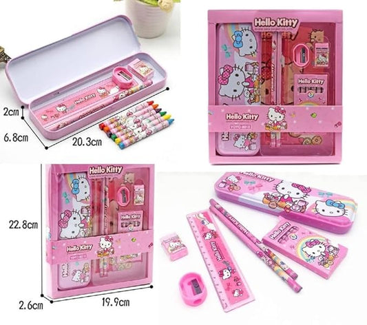New Kids Cartoon Hello Kitty Printed Stationary Kit | Pencil, Pen, Book, Eraser, Sharpener Stationary Kit Set | Birthday Gift for Kids(Multi Color)