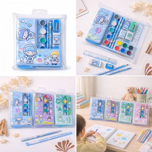 Plastic Kids Stationery Gift Sets | 2 pencils,Digital watch, Wallet, Sharpner, Eraser & Pencil cap | Return Gift For Kids
