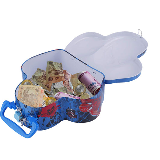 Piggy Bank - Money Saving Tin Coin Bank with Lock and Key, Cartoon Coin Box for Kids, Boys, Girls, Piggy Bank for Kids, Money Box for Boys, Birthday Return Gift (Blue)