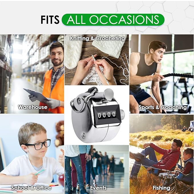 4-Digits Metal Hand Tally Counter | Mechanical Palm Counter | Handheld Pitch Clicker Counter | Number Count for Row, People, Games, Fishing, Knitting
